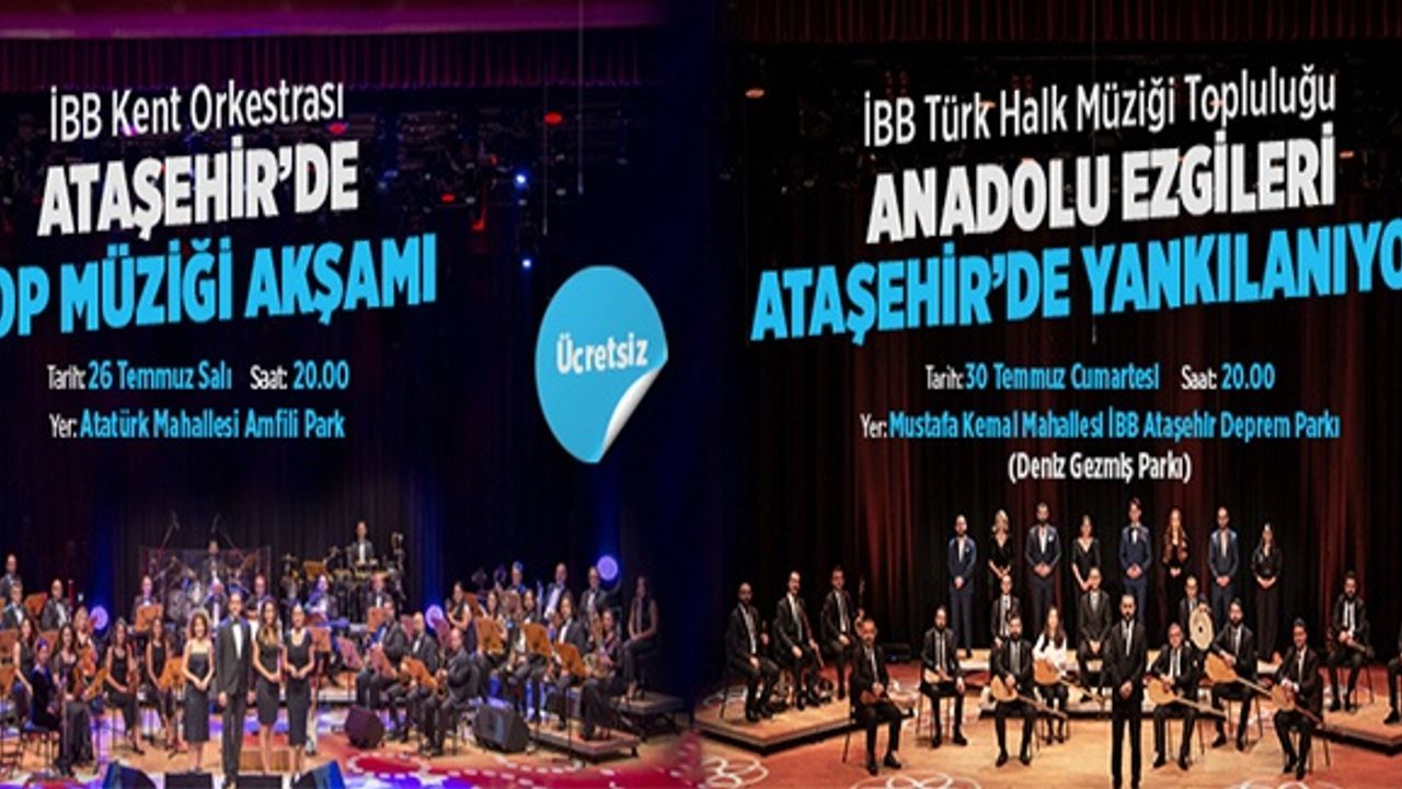 Sonrasında ise İBB Türk Halk Müziği Topluluğu zengin repertuvarıyla Ataşehirlilere müzik dolu bir yaz akşamı yaşatacak. Konser 30 Temmuz Cumartesi günü saat 20.00’de Mustafa Kemal Mahallesi Deniz Gezmiş Parkın’da düzenlenecek.