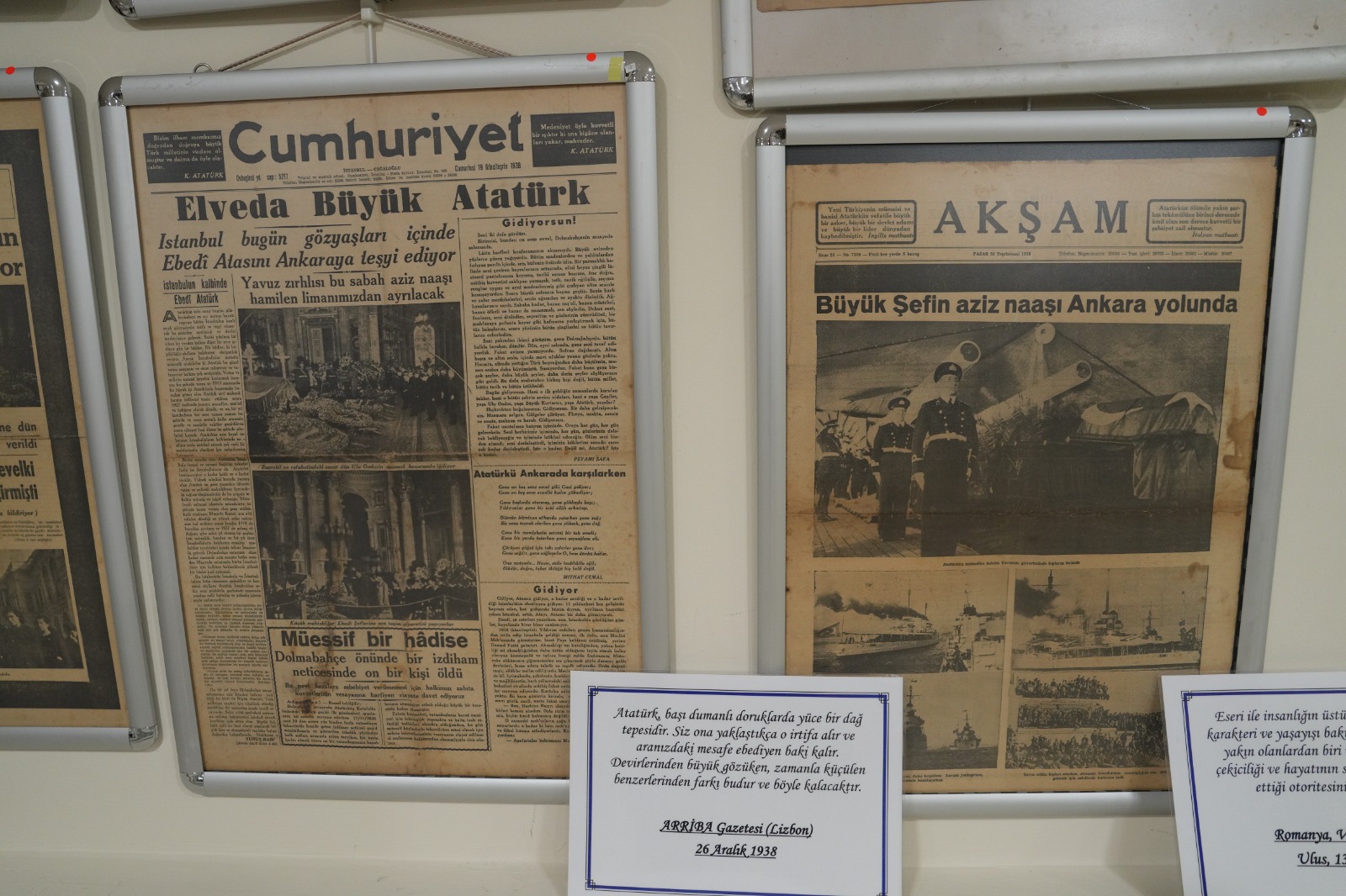 9 Kasım–23 Kasım 1938 tarihlerini kapsayan bu bölümde; Atatürk’ün vefatı, cenaze töreni ve naaşının nakline ilişkin dönemin yaklaşık 20 önemli gazetesi seri halinde sergileniyor.