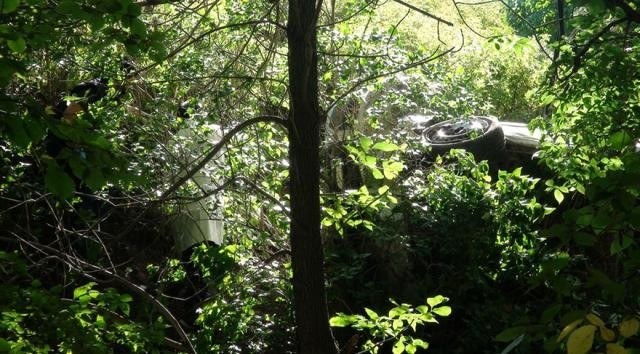 Kars kalesi yolunda, sabah saatlerinde kontrolden çıkarak yamaçtan yuvarlanan otomobilin sürücüsü öldü. Ağaçlar arasındaki otomobili, düğün fotoğrafı çekilmek için bölgeye giden gelin ve damat fark etti.