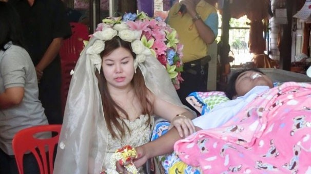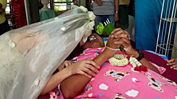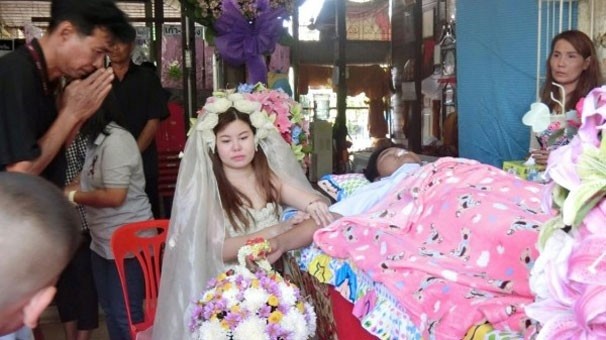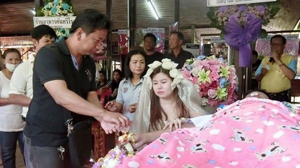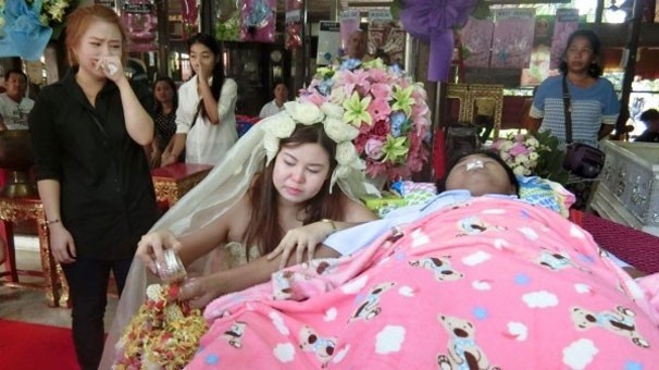 Nan Thippharat isimli genç kadın nişanlısının cenaze töreninin aynı zamanda nikah törenine çevirdi..