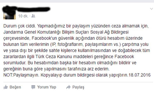 Hayatımızın vazgeçilmezi olan sosyal medya ve bu mecralardaki hesaplarımız üzerinden, en küçük bir suç teşkil eden ileti vb. konuları için ne kadar da paniklediğimiz, şimdi de darbe girişimi sonrası yayılan iletiyle tescillendi.