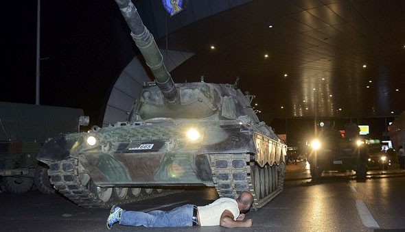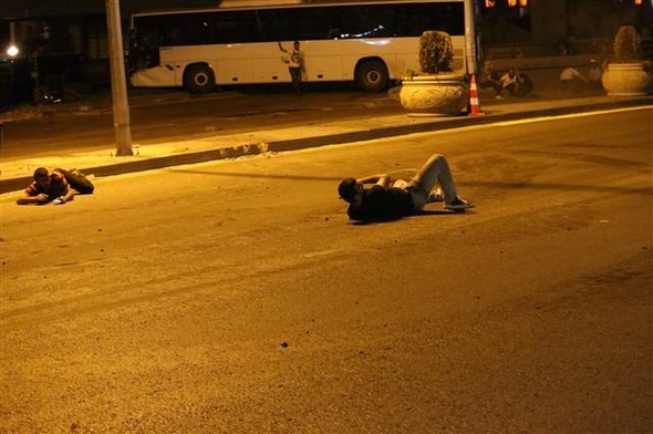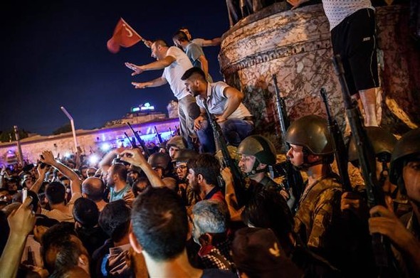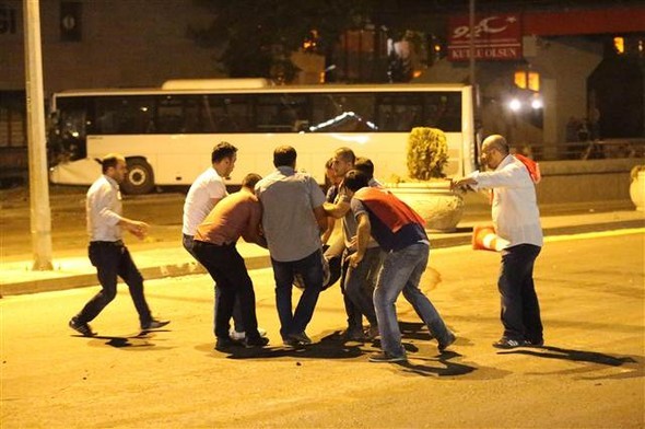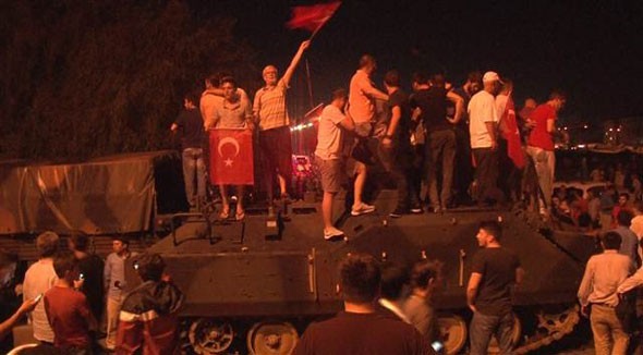 - Vatandaşlar pek çok kentte sokağa döküldü. Darbe girişimindeki askerleri durduruyor.
