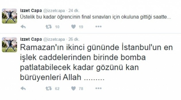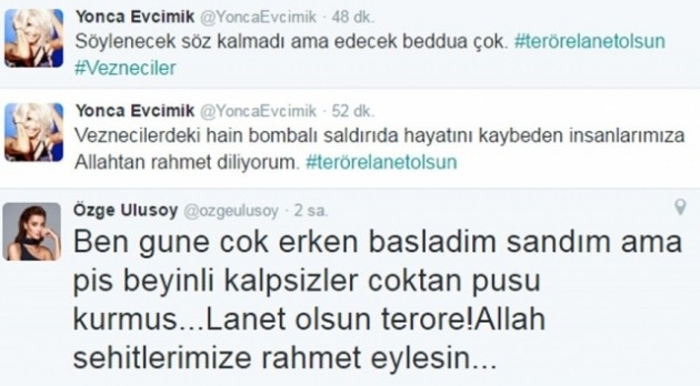 Kısa sürede Türkiye gündeminde birinci sıraya giren patlamaya ünlülerin tepkileri de şöyle: