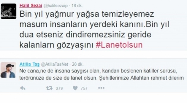 Halil Sezai ve Atilla Taş'ın gündemle alakalı twitleri tikkatçekici