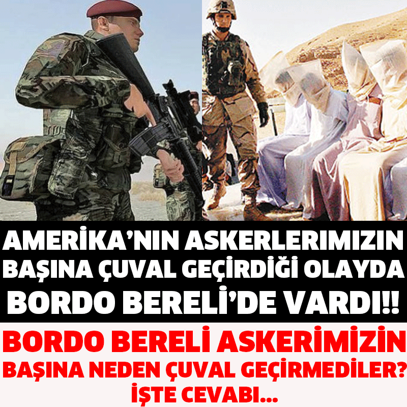 1- Amerika’nın, askerlerimizin kafasına çuval geçirdiği o olayda orada 1 bordo bereli vardı. Bütün askerlerin başına çuval geçti ama o bir bordo berelimizin başına çuval geçmedi. Neden? Çünkü bordo bereli başına çuval geçirilmesine karşı eğitimlidir. Dünyada bu eğitimi alan tek asker bordo berelilerdir. Tabi Amerikalılar baktılar çuval geçmiyor bordo bereliyi komple çuvala koydular. Şaşırdılar tabi. Kim olsa şaşırır.