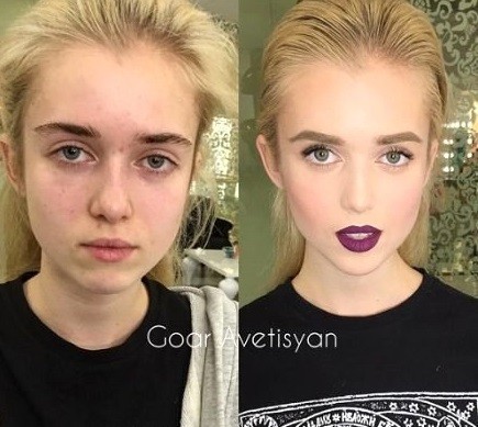 ESTETİKLE DEĞİL MAKYAJLA BAMBAŞKA BİRİ OLDULAR Makyöz Goar Avetisyan kelimenin tam anlamıyla kozmetik ürünler sayesinde mucize yaratıyor. 23 yaşındaki Avetisyan, Facebook'taki sayfasında kozmetik ürünleri kullanım sırlarını da takipçileriyle paylaşıyor.