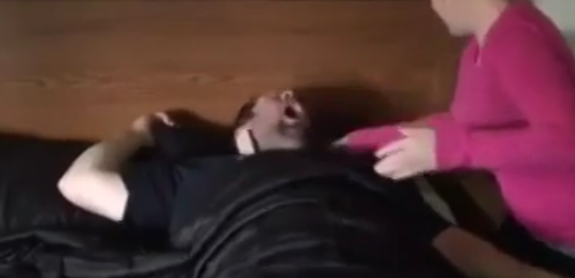 UYUYAN KARISINI KARTOPU İLE ŞAKA YAPARAK UYANDIRIYOR!!