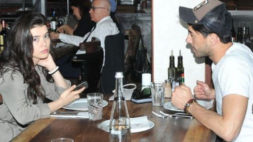 Kocamın Ailesi dizisinin oyuncularından Gökhan Alkan ve Seray Kaya, İstinye Park'taki bir restoranda yemek yerken görüntülendi.