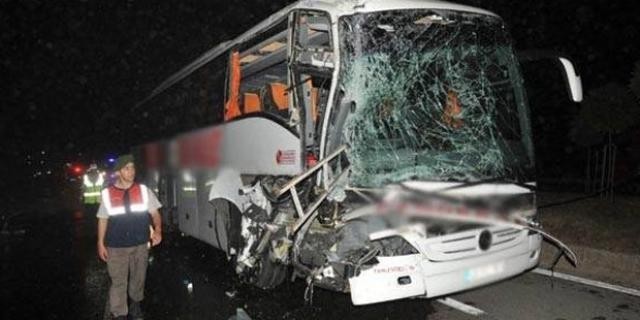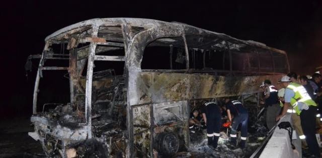 Alınan bilgiye göre, Bekir U. yönetimindeki 34 HA 5228 plakalı şehirlerarası yolcu otobüsü, Balıkesir-Manisa il sınırında karayolu kenarındaki beton bloklara çarptı. Çarpmanın etkisiyle yanmaya başlayan otobüsteki bazı yolcular camlardan dışarı fırladı, diğerleri kendi imkanlarıyla araçtan uzaklaştı.