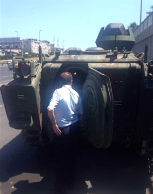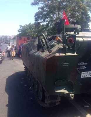 Yaklaşık 200'er metre aralıklarla çok sayıda tanka ve askeri personel taşıyan ciplere burada el konuldu. El konulan tanklara vatandaşlar tarafından Türk bayrakları asıldığı görülürken her ele geçirilen askeri aracın başında silahlı polisler bekledi.