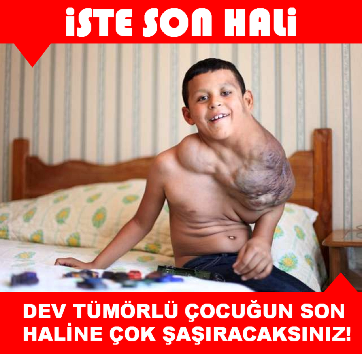 Dev tümör, çocuğun gözlerinden kalbine kadar büyük bir bölgeye yayılmış durumdaydı. Küçük çocuk, ailesinin parası olmaması nedeniyle tedavi edilemiyordu.