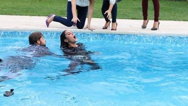 KORKULU ANLAR YAŞANDI Defalarca tekrar tekrar havuza düşmesi gereken Tuğal' in bu sahnenin çekimlerinde soğuk suyun etkisiyle, hipotermiye girerek kendinden geçmesi etrafındakilere korkulu anlar yaşattı. Cumartesi günü ekranlara gelecek olan ve oldukça heyecanlı anlar yaşatan çekimlerde aynı kıyafeti üstlerine 6 defa giyerek suya atlayan genç oyuncuların performansları takdir topladı.