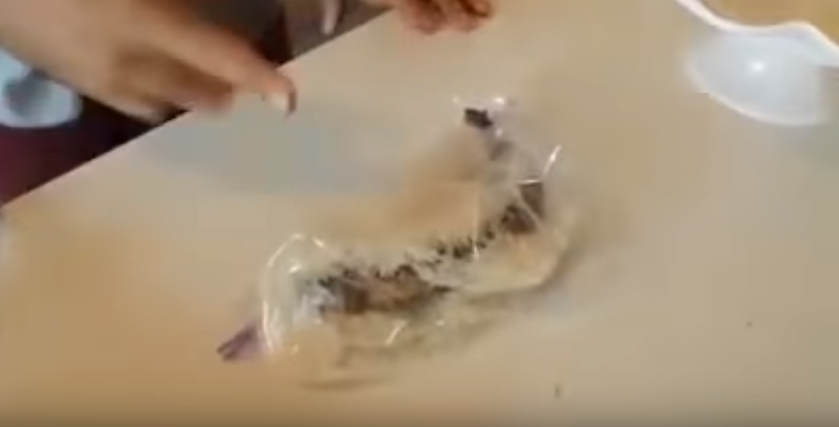 bir poşet veya kapalı bir ambalaja pirinç ile muzu koyuyoruz...