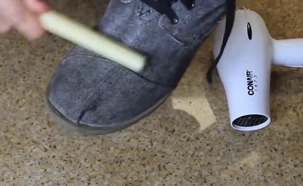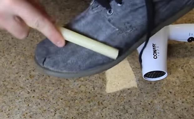 Hemen hemen her yerde bulabileceğiniz çok ucuz bir mum ile ayakkabınızın etrafını boşluk bırakmayacak şekilde gezdirin.