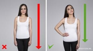 Elleriniz serbest durmalı ama bedeninizin iki yanında dümdüz sarkmamalı. Bir elinizi belinize koyabilir, başınızı hafifçe yana eğebilirsiniz. Bu poz, vücudunuzun tüm olumlu taraflarını, güzel yüzünüzü vurgulama şansı verir.