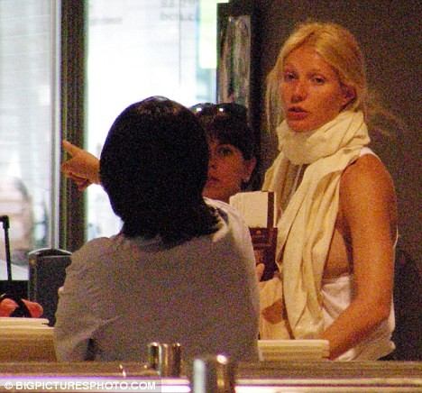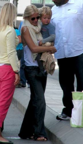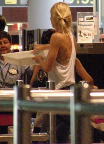 Barselona havalimanında tişörtünün azizliğine uğrayan 36 yaşındaki oyuncu Gwyneth Paltrow, durumun farkına varsa da flaşların patlamasına engel olamadı.