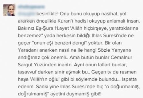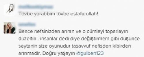Gülben Ergen'in takipçilerinden bazıları, sanatçının şirk koştuğunu söylerken kimileri de ayetle cevap verip sözlerini düzeltmesi gerektiğini savundu.
