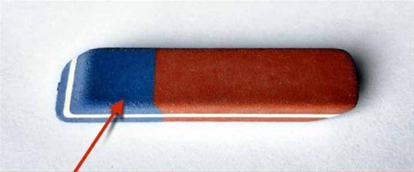 Bir tarafı sadece kurşun kalemle yazılanları silerken, diğer tarafı sadece tükenmez kalemle yazılan yazıları siliyor.