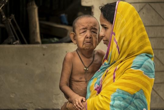 Bangladeşli Bayezid Hossain, 4 yaşında olmasına rağmen dünyada oldukça nadir görülen bir rahatsızlık olan erken yaşta yaşlanma hastalığı 'progeria' sebebiyle 80 yaşındaymış gibi görünüyor.