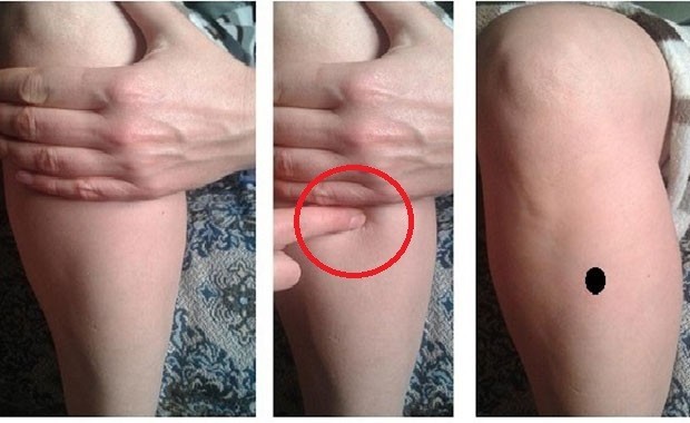 Dizkapağı altında yer almaktadır. Yere oturup dizlerinizi kendinize doğru çekin. Dizinizin altında daha yüksek bir alan fark edeceksiniz. Parmağınızı onun üzerine koyup bastırın.
