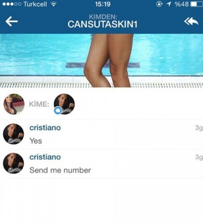 27 milyon takipçisi olan Ronaldo, kendi hesabından Cansu Taşkın’a mesajlar gönderip iltifat yağdırdı.