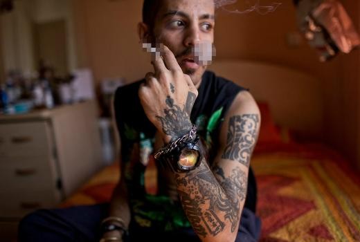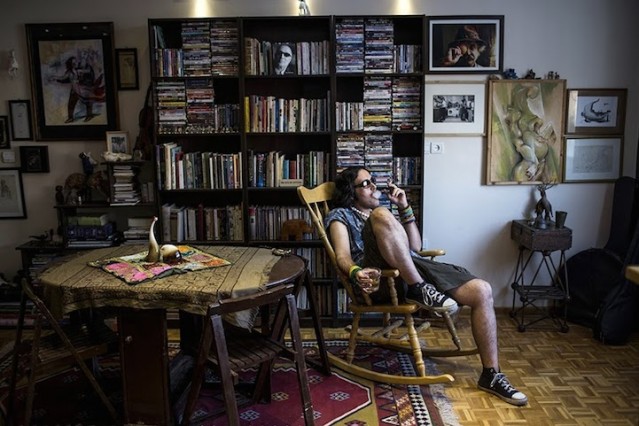 Yerel sanatçı Eylya evinde içki ve sigara içiyor.