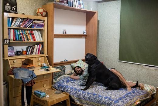 Şervin ve köpeği. İran'daki İslami kurallara göre, insanların köpek beslemelerine izin verilmiyor. Bu yüzden insanlar, köpeklerini ev dışına çıkarmamaya özen gösteriyor. Zira polis sokakta gezdirilen köpeklere el koyuyor...