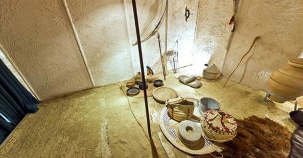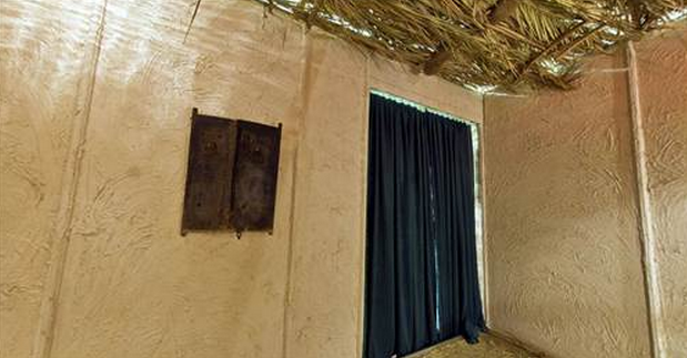 Ev, ağaç dallarından yapılmış hasır çatının altında birkaç kaç mutfak eşyasını içinde barındıran tek göz odadan oluşuyor.