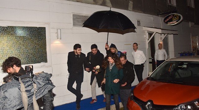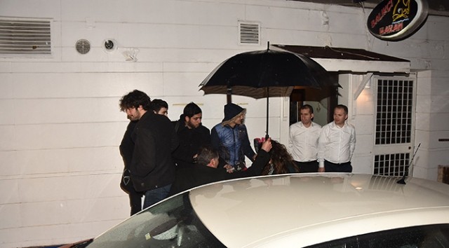 Masaya geçer geçmez Birkan Sokullu'nun omzuna başını koyan Berrak Tüzünataç, bir anda aşka gelip Birkan Sokullu'yu öpücüğe boğdu. Mekan çıkışında ayakta duramayan oyuncu düşme tehlikesi de atlattı.