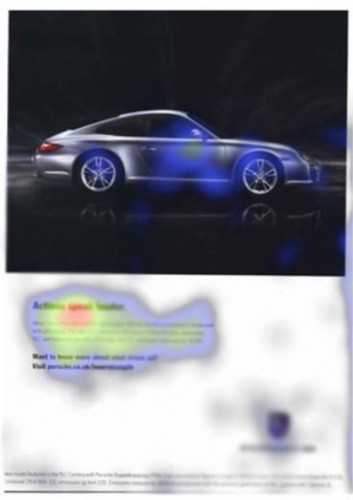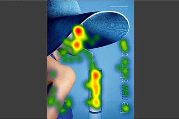 Saç boyası reklamı reklamda güzel bir kadının yer almasının yeterli olmadığını gösteriyor. Göz taraması teknolojisine göre sola doğru bakan kadın, objektife bakan kadından daha çok ilgi çekiyor!