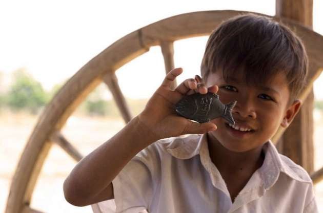 Kamboçya'da şans getirdiğine inanan balık sembolünü kullanan Charles, demirden balık üretmeye başladı.