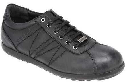 Gri eşofmandan belli olan pipiyle uyumlu, özel okul öğrencisi ayakkabısı