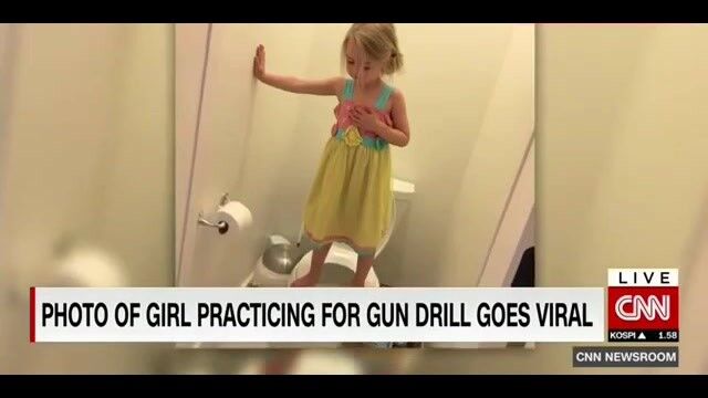 Olası bir saldırıdan korunmak için okulda yapılan tatbikatı evde tekrarlayan küçük kızın fotoğrafı sosyal medyada da büyük şaşkınlık yarattı.