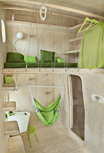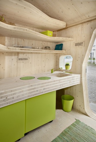 Sadece 10 m2 boyutundaki bu evlerde, mutfak, çalışma masası, salon ve yüksekte uyuma gibi özellikler bulunuyor.