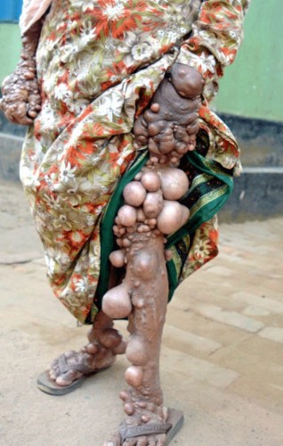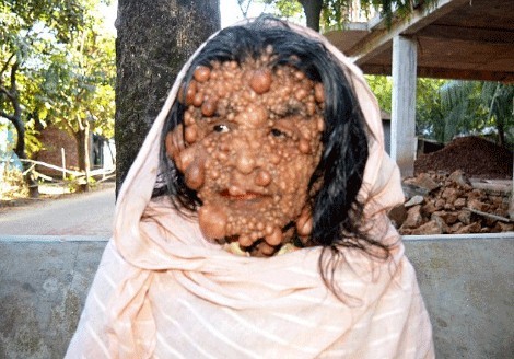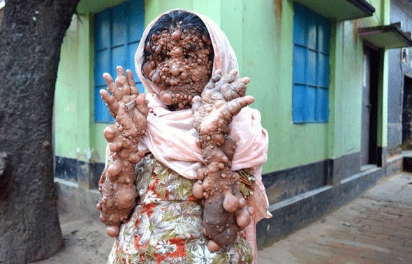 60 yaşındaki Bangladeşli Begum, saç diplerinden ayak tırnaklarına kadar tamamen tümörlerle yaşam mücadelesi veriyor.