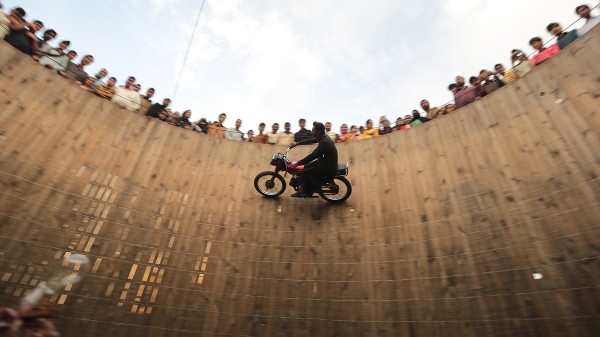 Bir çok renkli kültürel öğenin ve değişik eğlence biçiminin yaşandığı Pakistan'da mobil akrobatlar 'ölüm kuyusu' adı verilen yerlerde hünerlerini sergileyip ekmek paralarını kazanıyor.