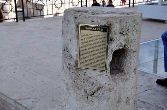 Sadaka taşları taş bloklardan oluşan, genellikle cami veya türbe köşelerinde bulunan, ortası çukur, bir buçuk-iki cm yüksekliğinde taşlardı. Bu taşlar Osmanlı’da sosyal dayanışmanın bir parçasıydı ve fakirlerin umut kapısıydı. Fakirler dilenmekten, zengin riya ve gösterişten çekindiği için sadakalarını bu taşlara koyar, fakir de gece vakti gelip ihtiyacı kadarını buradan alıp, geriye kalanını kendisi gibi bir başka fakire bırakırdı.