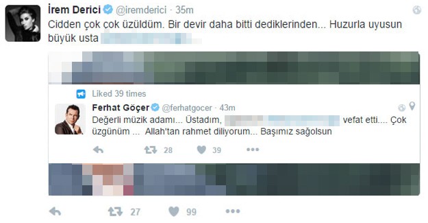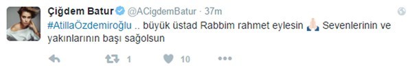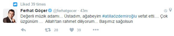 Aykut Gürel kişisel sosyal medya hesabından; "Hocam, ağabeyim, tanıdığım en zarif insan Atilla Özdemiroğlu. Mekanın cennet olsun. çok üzgünüm." dedi. Ferhat Göçer de üzüntüsünü soyal medya hesabından: Değerli müzik adamı... Üstadım, ağabeyim #atillaözdemiroğlu vefat etti.... Çok üzgünüm ... Allah'tan rahmet diliyorum... Başımız sağolsun" sözleriyle dile getirdi.