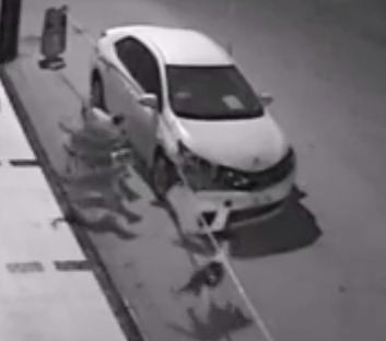 Ancak, polisler güvenlik kamerası görüntülerini izlediğinde gerçek ortaya çıktı. Görüntülerde sürü halinde dolaşan sokak köpeklerinin park halindeki otomobilin tamponunu parçaladığı görüldü.