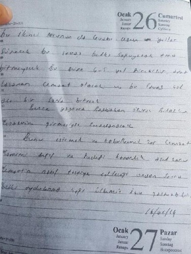 Fethullahçı Terör Örgütü'nün (FETÖ) darbe girişimine ilişkin soruşturma kapsamında tutuklanan Sapanca Cumhuriyet Savcısı M.E.Y.'ye ait bir günlük ele geçirildi.