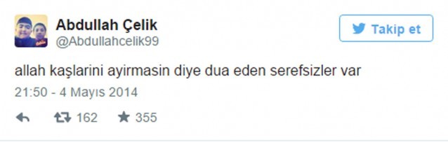 Allah kaşlarını ayırmasın diye dua eden şerefsizler var.