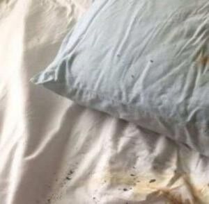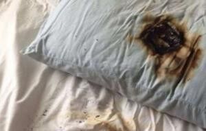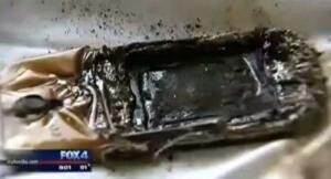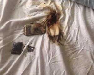 Fotoğraflarda da görüldüğü gibi yastığın altında bulunan telefonun eridiğini ve yanmaya başladığını gördü.