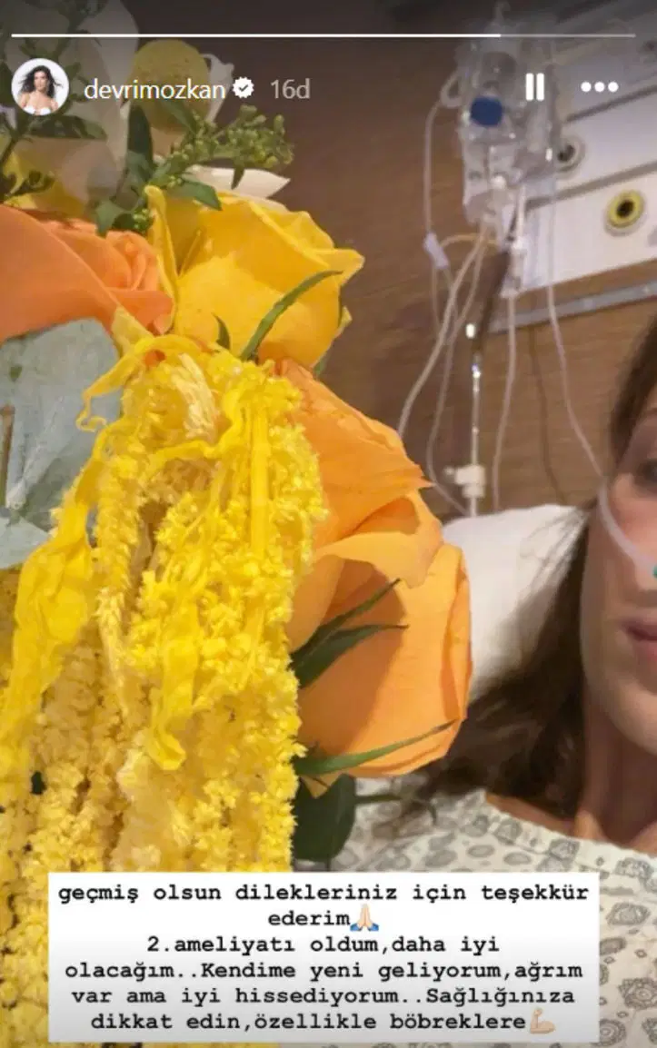 “Geçmiş olsun dilekleriniz için teşekkür ederim. İkinci ameliyatımı oldum, daha iyi olacağım. Kendime yeni geliyorum, ağrım var ama iyi hissediyorum. Sağlığınıza dikkat edin, özellikle böbreklere…” ifadelerini kullandı.