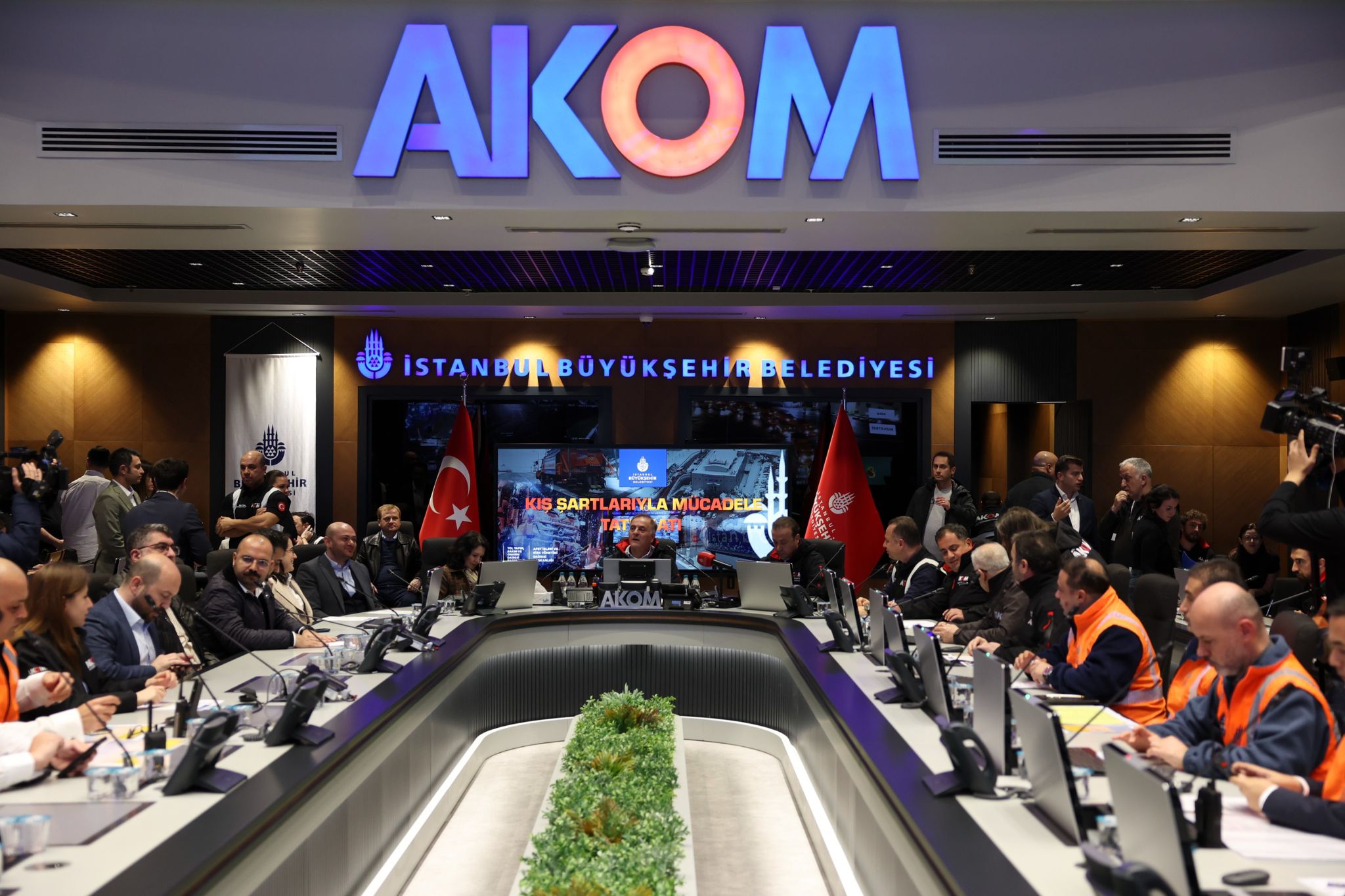 Kış koşullarına yönelik hazırlıkların ele alındığı AKOM’da, olası olumsuzluklara karşı yürütülen planlamalar gözden geçirildi. Aynı gece, içme suyu ve altyapı hizmetlerinin yönetildiği İSKİ tesislerinde de izleme ve kontrol süreçleri takip edildi. Zabıta Komuta Merkezi ve İETT garajlarında görev yapan ekiplerle buluşmalar gerçekleştirildi.