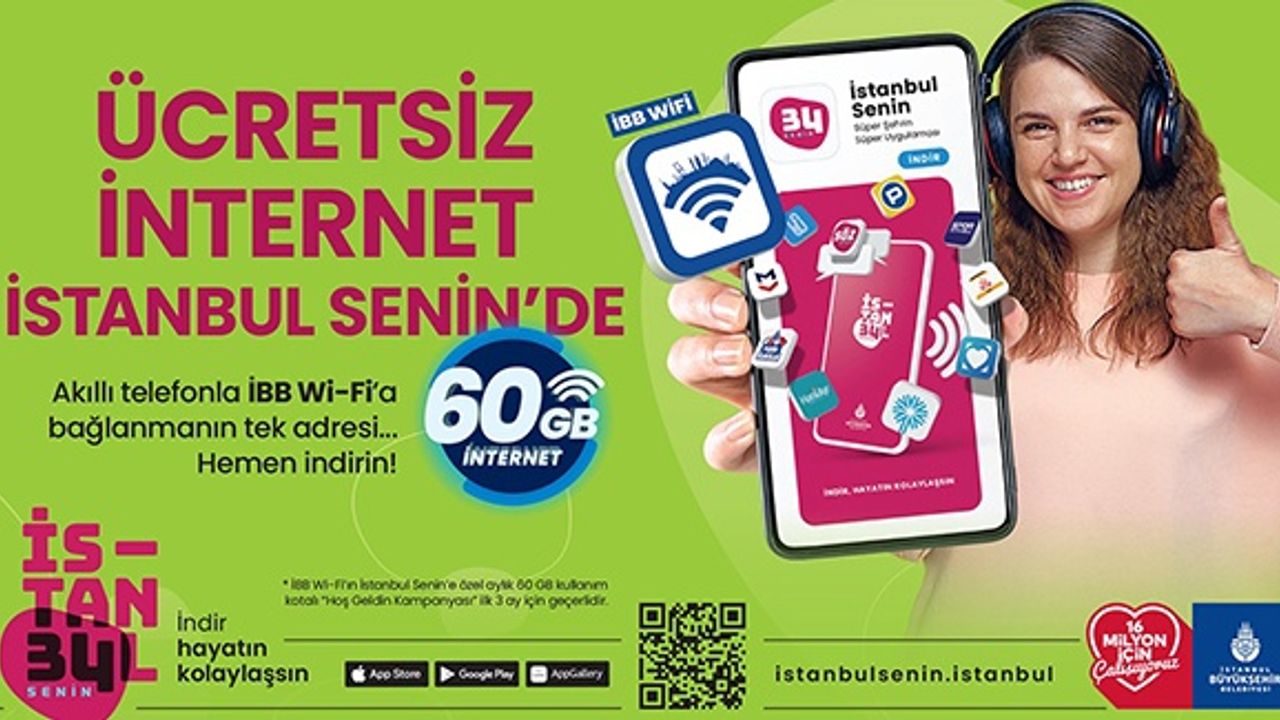 Ücretsiz Wi-Fi hizmetinden faydalanmak için İstanbullular, İBB Wi-Fi karşılama ekranından ‘İstanbul Senin’ süper uygulamasını telefonlarına indirmeleri ve kayıt olmaları için ilgili servislere yönlendirilecekler.