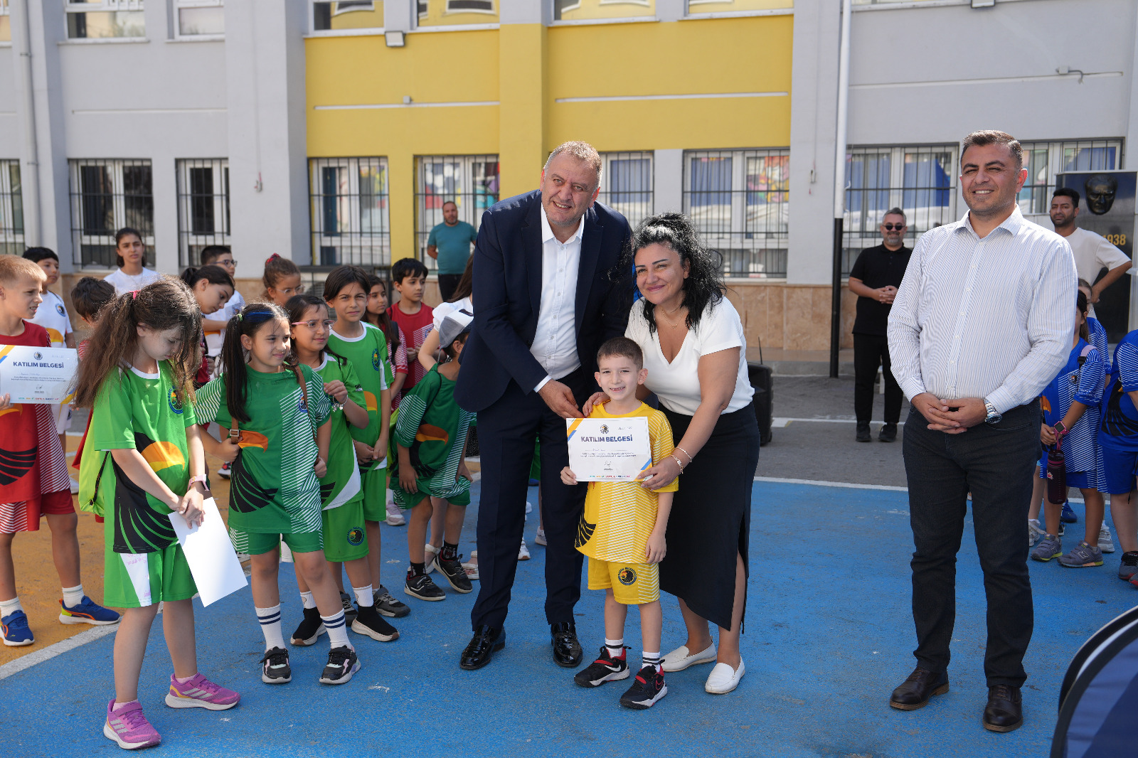 Kartal Belediyesi’nin 7-11 yaş grubundaki çocuklara özel olarak hayata geçirdiği Yaz Spor Okulu’nun ilk dönemi sona erdi. Yakacık İhsan Zakiroğlu Ortaokulu’nda düzenlenen törende, yaş gruplarını temsilen seçilen öğrencilere başarı sertifikaları takdim edildi. Sertifikalar, Kartal Belediyesi Başkan Yardımcıları Adem Uçar, Dr. Dilek Kars ve Gençlik ve Spor Hizmetleri Müdürü Serkan Taş tarafından verildi. Diğer öğrenciler ise belgelerini ailelerinin eşliğinde aldı. Tören, hatıra fotoğrafları ve coşkulu kutlamalarla sona erdi.