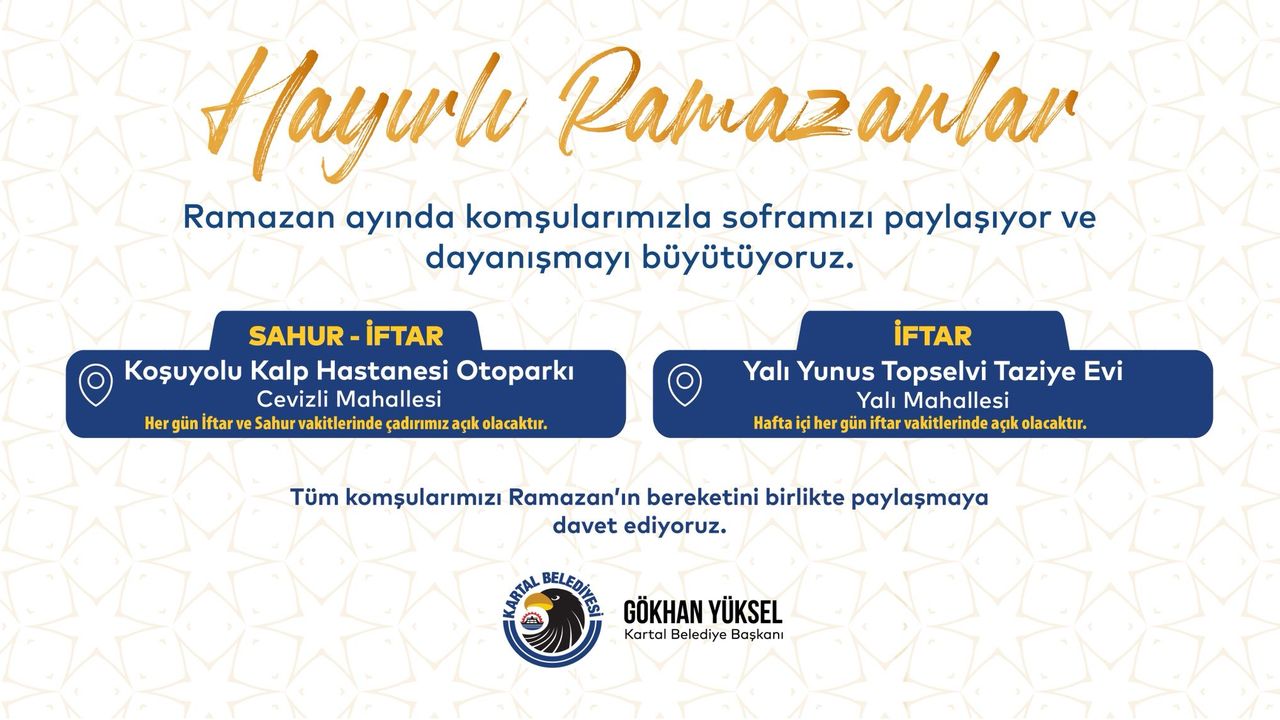 Gökhan Yüksel, Ramazan ayının birlik ve dayanışma ruhunun Kartal’ın her köşesinde hissedilmesi için tüm hazırlıkların tamamlandığını belirterek, bu mübarek ayın ilçeye ve ülkeye huzur, bereket ve sağlık getirmesi temennisinde bulundu.