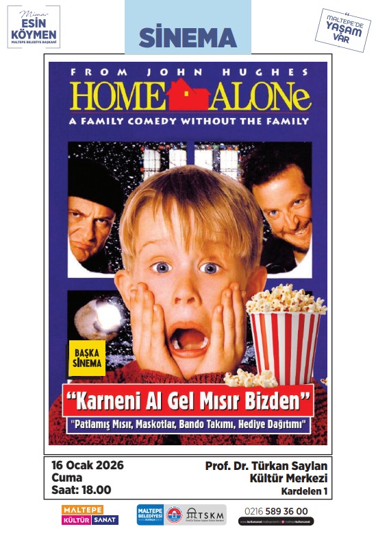 Maltepe Belediyesi, çocukların severek izlediği kült film Evde Tek Başına’yı yarıyıl tatilinde minik izleyicilerle buluşturacak. “Karneni Al, Mısır Bizden” sloganıyla düzenlenecek sinema etkinliğinde patlamış mısır ikramı yapılacak, maskotlar ve bando takımı çocuklara eşlik edecek. Etkinlik kapsamında çeşitli hediyeler de dağıtılacak.
