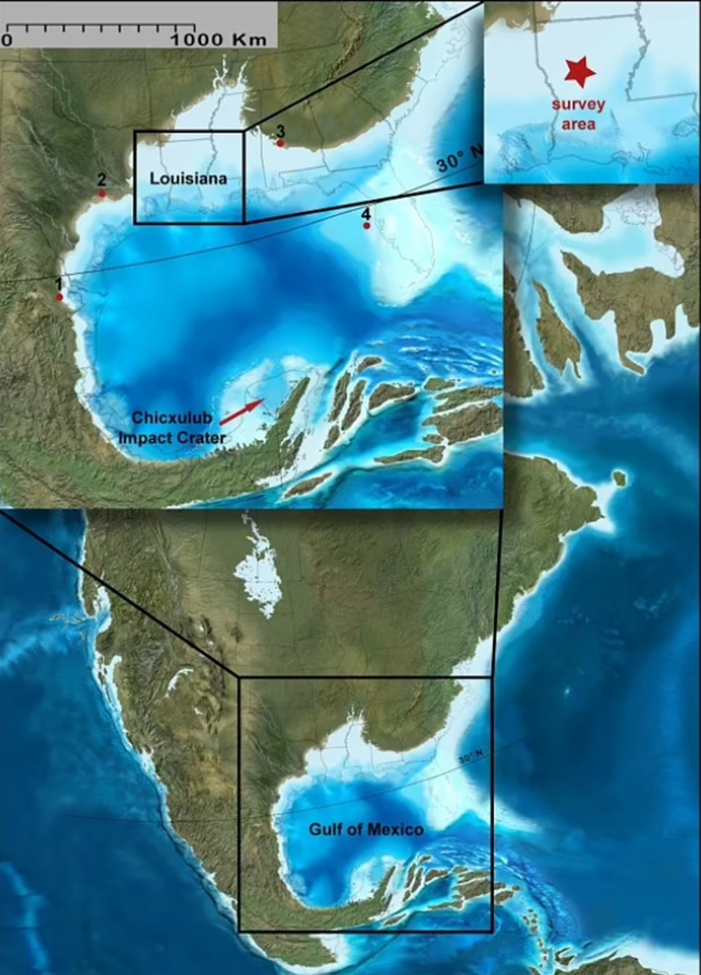 Çalışmanın yazarı Gary Kinsland, konuya ilişkin yaptığı açıklamada, “Dünya 66 milyon yıl önce büyük asteroit çarpması nedeniyle 11 şiddetindeki depremlerle sarsıldı. Sular, o kadar derindi ki, 1,5 kilometre yüksekliğinde bir tsunami meydana geldi ve önüne çıkan her şeyi götürdü” dedi.