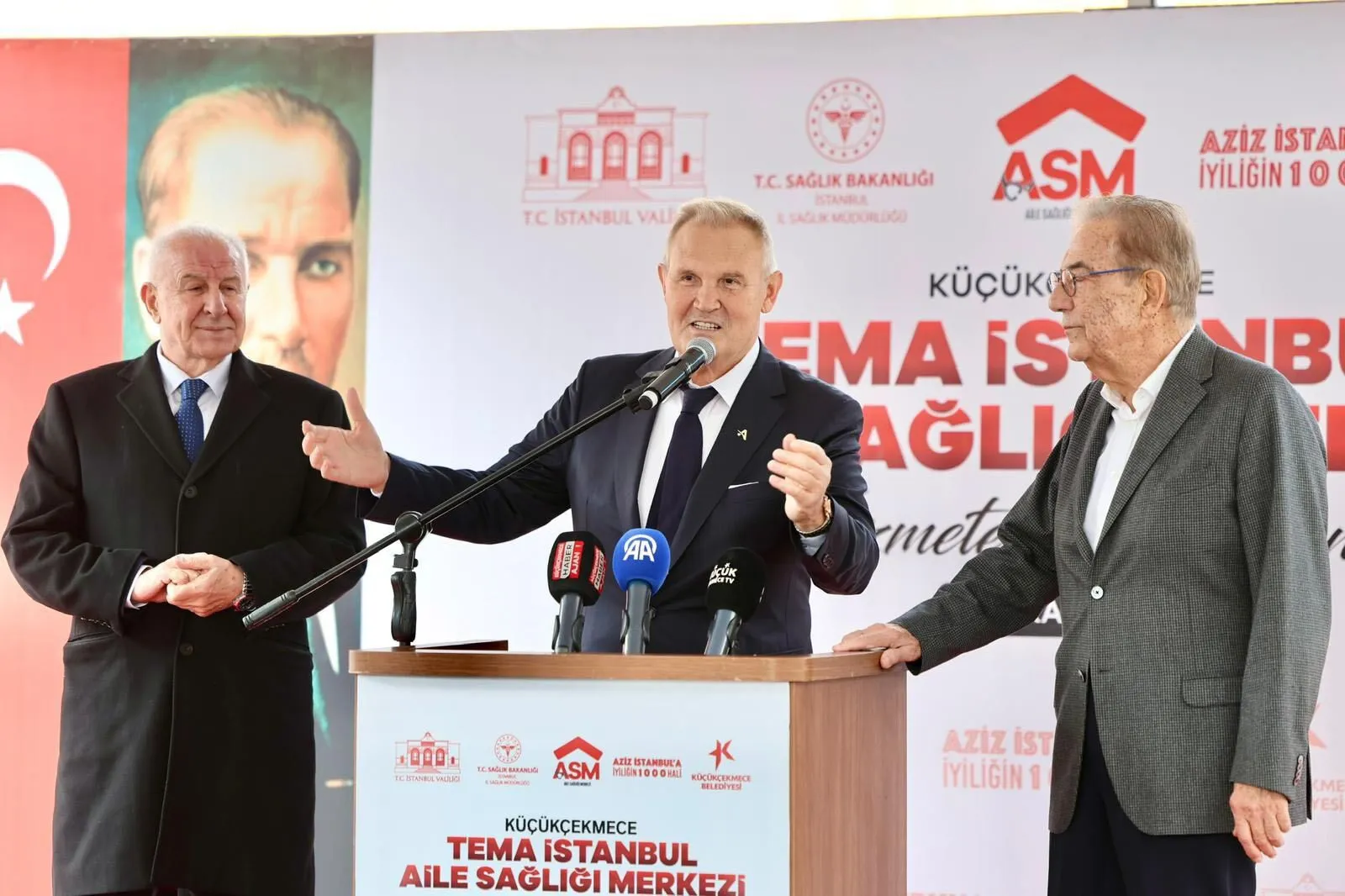 TEMA İstanbul’un katkılarıyla hayata geçirilen Tema İstanbul Aile Sağlığı Merkezi, İstanbul Valisi Davut Gül, Küçükçekmece Kaymakamı Mustafa Anteplioğlu, Küçükçekmece Belediye Başkanı Kemal Çebi, bağışçı iş insanları Erhan Boysanoğlu, Süleyman Çetinsaya ve Ali Kantur, İstanbul İl Sağlık Müdürü Doç. Dr. Abdullah Emre Güner, Küçükçekmece Sağlık Grup Başkanı Ali Osman Çolak, Ak Parti Küçükçekmece İlçe Başkanı Emin Kaan Kaya, Zafer Partisi Küçükçekmece İlçe Başkanı Mustafa Güngör, İyi Parti Küçükçekmece İlçe Başkanı Rasim Yıldırım, mahalle muhtarları, meclis üyeleri, sağlık çalışanları, kaymakamlık ve belediye bürokratları ile vatandaşlar katıldı.